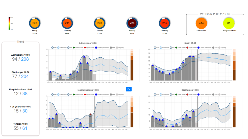 - 5-day forecast of patient volume using AI: better anticipation of demand and optimized team planning.